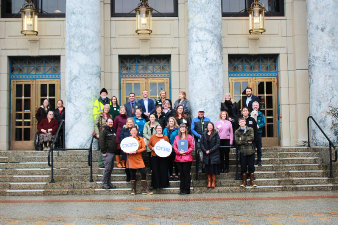 Members of the Alaska Food Coalition on the steps of the State Capitol in Juneau, Alaska.
